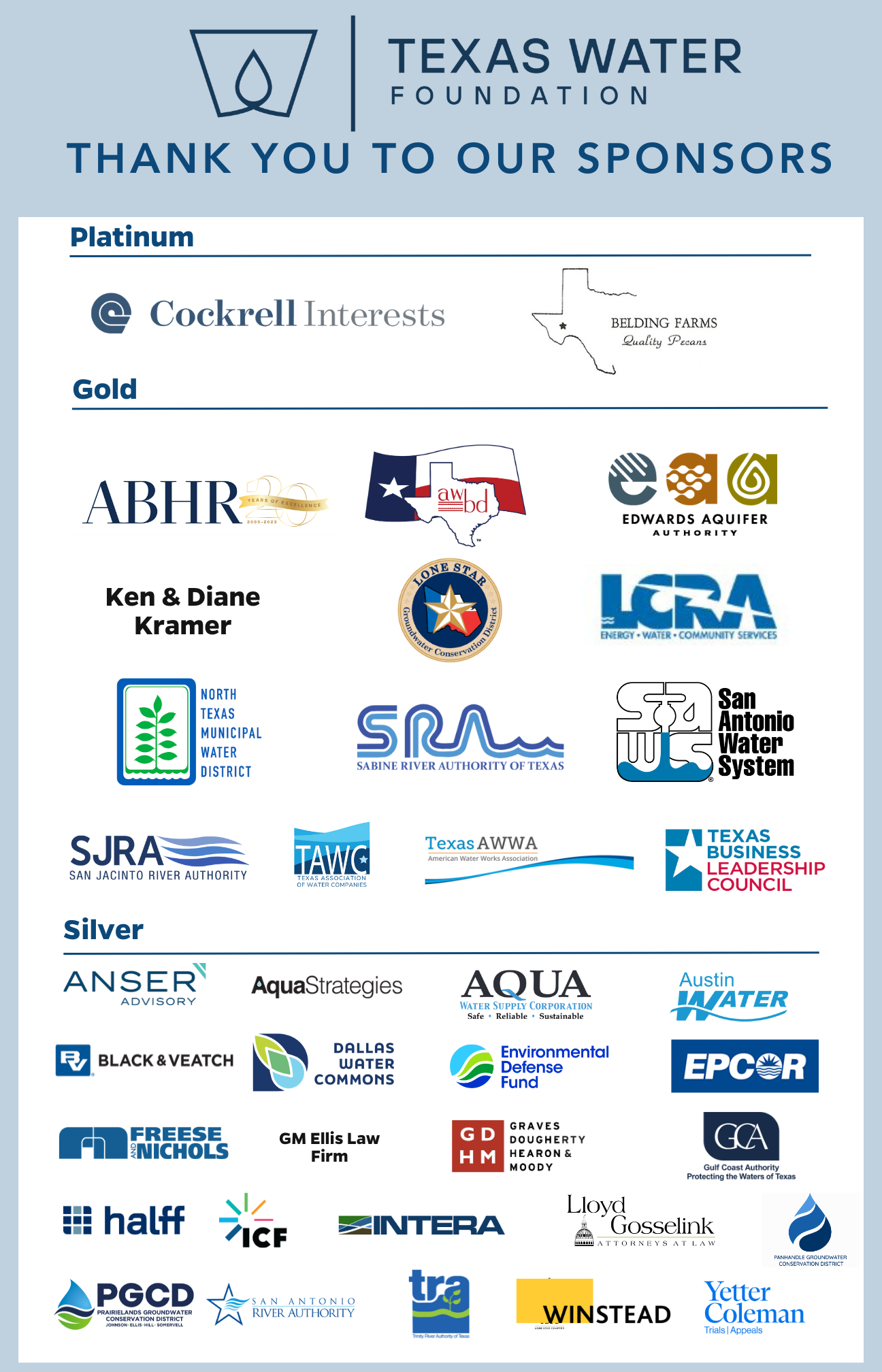 Join us on September 24, 2024, from 6-9pm, as we celebrate the accomplishments of this Texas water champion.