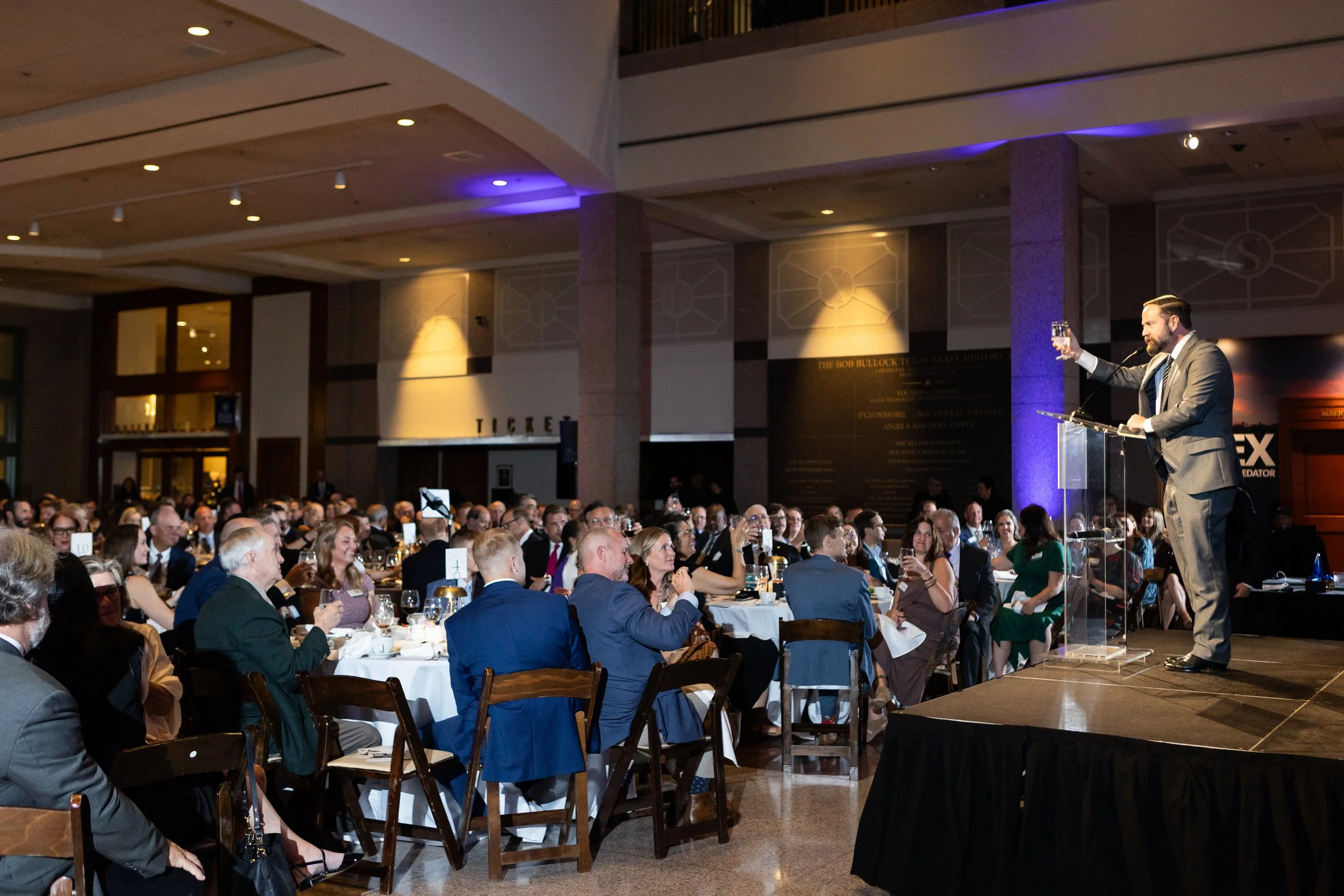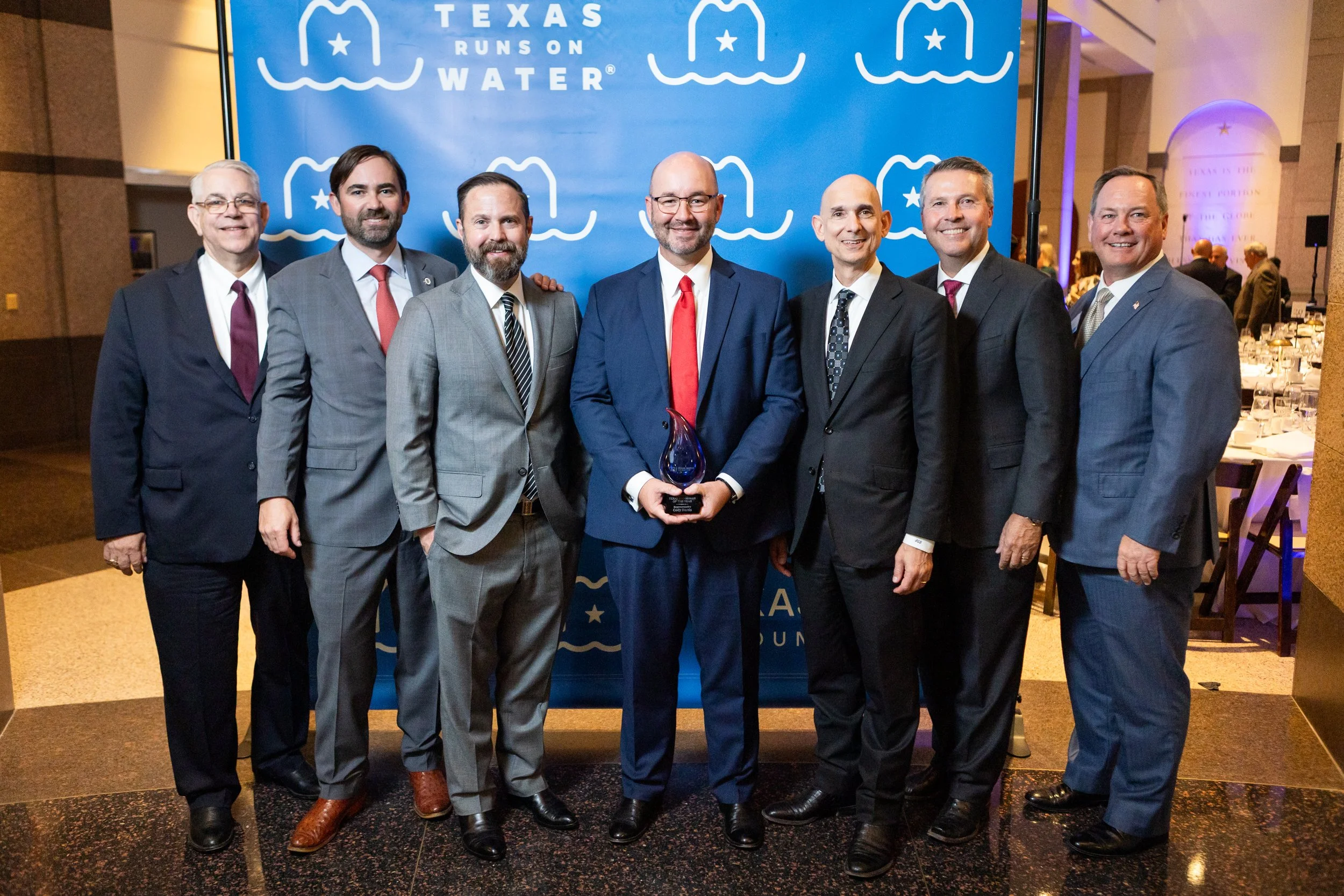 The theme of infrastructure funding was carried throughout the evening’s program. In addition to honoring Harris’ work, the program also honored the champions that paved the way to this generational moment in Texas water.