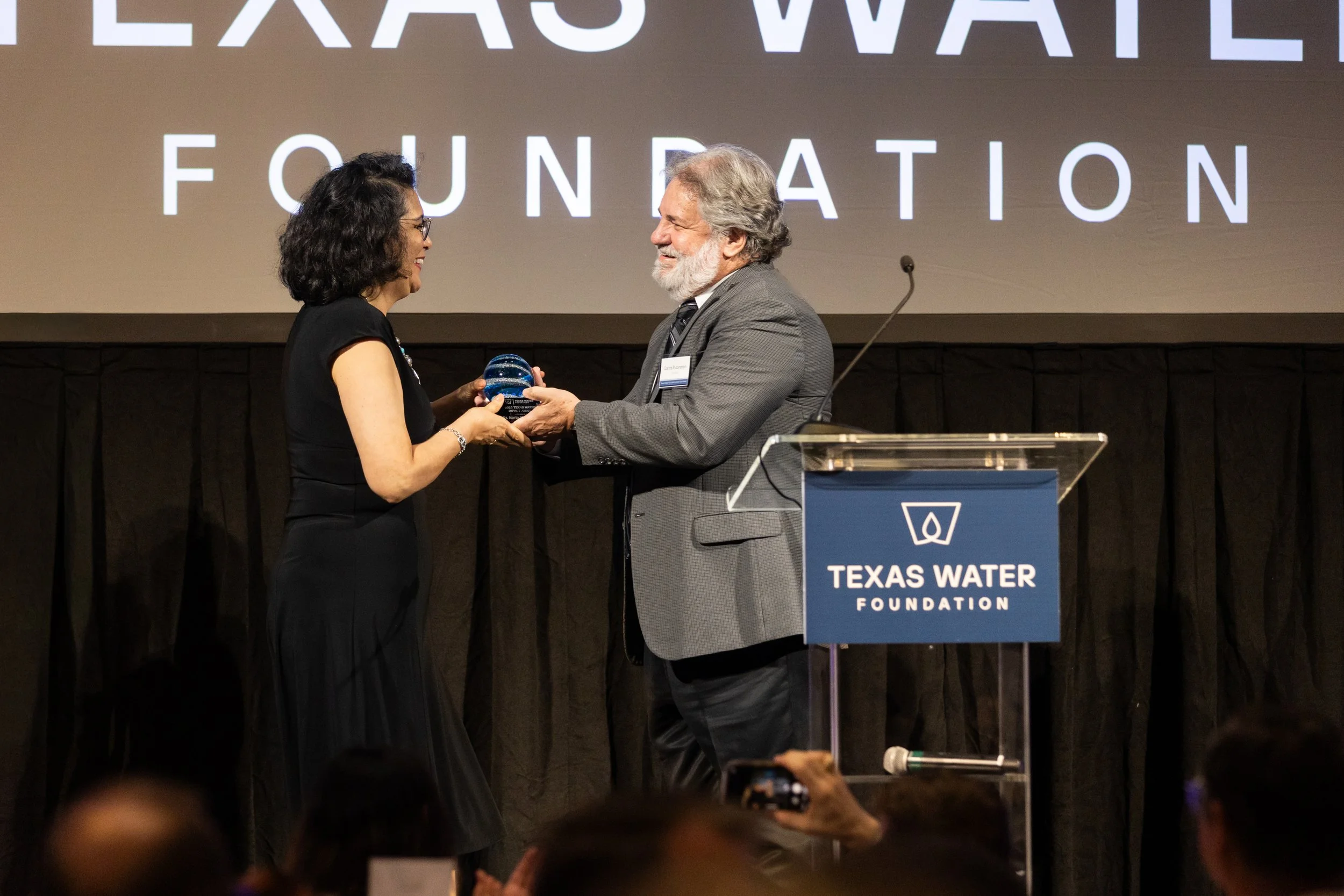 In addition to celebrating Representative Cody Harris and the water champions who paved the way, Texas Water Foundation commenced the evening with the presentation of a new surprise award. Whereas the Rainmaker of the Year is selected for a particular action that is making a generational impact in Texas water, the Impact Awardee is defined as someone whose body of work is leaving a lasting impact. Continuing on the theme of water infrastructure investment, former International Boundary and Water Commissioner (IBWC) Dr. Maria Elena Giner was named for Texas Water Foundation’s first 2025 Impact Award.