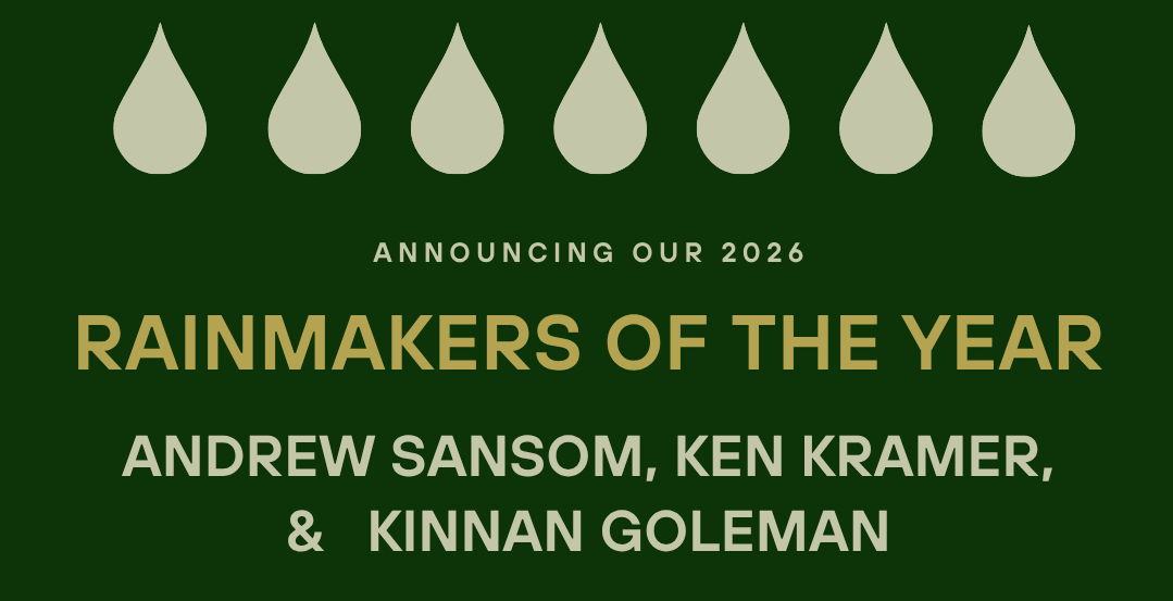 Join us in congratulating the 2026 Rainmakers: Andrew Sansom, Ken Kramer, and Kinnan Goleman.